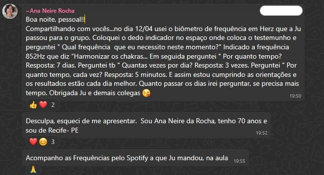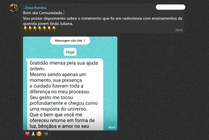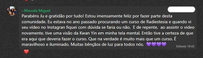 A Comunidade Meu Despertar já ajudou centenas de pessoas a aplicar: Radiestesia, Cristais, Chakraterapia, Divórcio Energético e Protocolos Completos de cura em si mesmas, familiares, amigos e clientes com segurança em tempo recorde…
